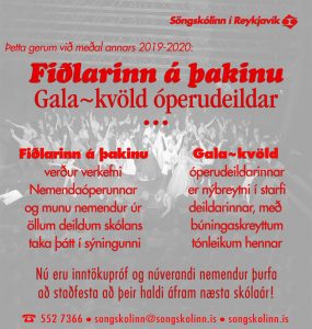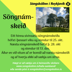 Hér á síðunni er að finna flest það sem þú þarft að vita um Söngskólann, en ef þú hefur einhverjar spurningar ekki hika við að hafa samband við okkur. Skrifstofan er opin: