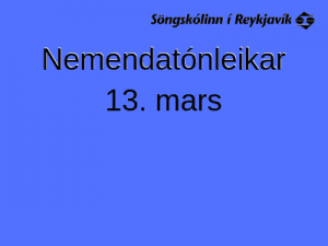 Reglulegir nemendatónleikar Söngskólans verða á miðvikudaginn þ. 13. mars nk. Nemendur Signýjar Sæmundsdóttur koma þar fram og syngja íslensk og erlend þjóðlög, sönglög og aríur.