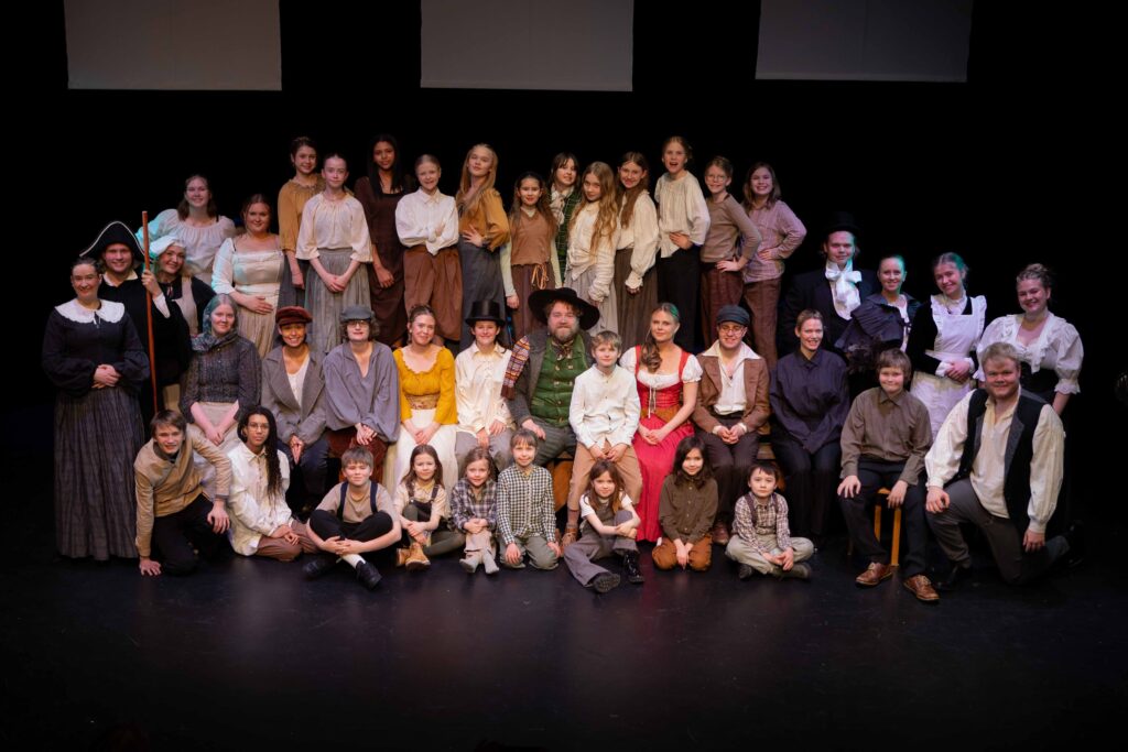 Á myndinni má sjá hópmynd af þátttakendum í sýningunni. Hægt er að sjá myndir af æfingum á Facebook síðu skólans: https://www.facebook.com/songskolinn