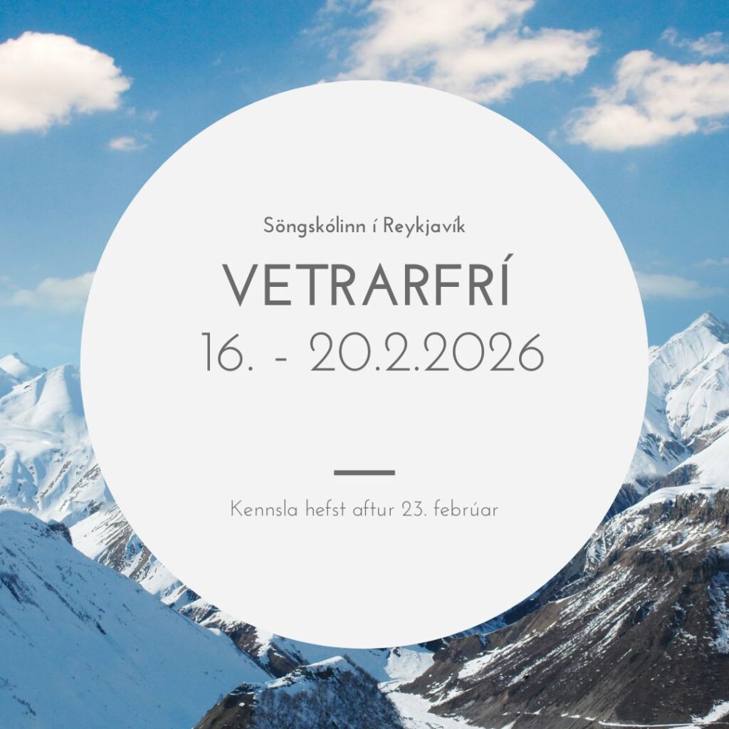 Söngskólinn í Reykjavík er í vetrarfríi frá mán. 16. febrúar til fös. 20. febrúar. Kennsla hefst aftur mánudaginn 23. febrúar.